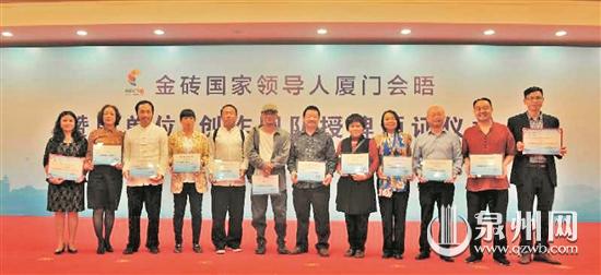 早報訊 (通訊員王雙季 記者陳小芬 文/圖)日前,金磚國家領(lǐng)導人廈門會晤贊助單位、創(chuàng)作團隊授牌頒證儀式在廈門舉行。在此次會晤中,金磚國禮入選12支團隊,德化占了10支,16件國禮,德化占15件。另外德化入圍35件作品。其中,德化的陳仁海設計團隊獲頒“廈門會晤禮品研制突出貢獻獎”,德化的柯宏榮、陳桂玉等9個金磚國禮團隊獲得金磚禮品研制貢獻獎。