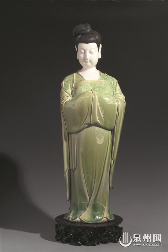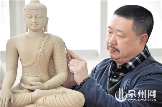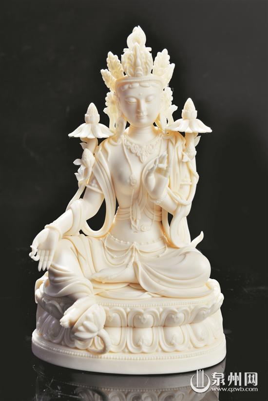 我們平時(shí)所見藏傳佛像多為銅像,但在林建勝的“聚玉堂”藝術(shù)館內(nèi),記者見到的如《長(zhǎng)壽佛》《綠度母》等藏傳佛教造像作品,則是用德化白瓷來表現(xiàn)。林建勝說,這些年他在研習(xí)藏傳佛教,也在創(chuàng)作這方面的作品。為做好作品,他專門去西藏等地感受風(fēng)土人情,學(xué)習(xí)當(dāng)?shù)匚幕。他說,只有不斷學(xué)習(xí)、親身體驗(yàn),作品才更真實(shí),才更有靈性。