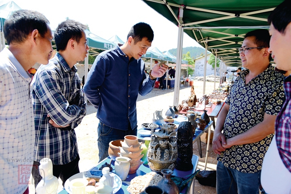 游客對(duì)洞上陶藝村創(chuàng)客們的陶藝作品充滿興趣。