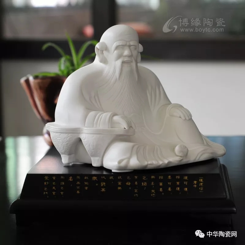 作品老子白發(fā)飄然,穩(wěn)如山岳,左手扶膝,右手憑幾,垂耳飄髯,指能彈物,目光炯炯,獨(dú)具超塵脫俗,仙風(fēng)道骨神韻。人物的面部刻畫(huà)得非常傳神,衣紋的處理也頗具動(dòng)感,整個(gè)人物給人一氣呵成之感,形象精致生動(dòng)。整座白瓷佛像神態(tài)浩然,和藹可親,炳煥生光,充滿(mǎn)魅力,是一件上乘作品。
