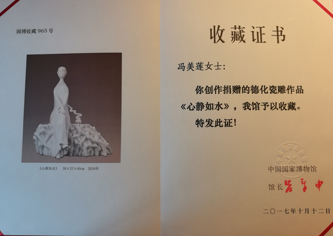 作品《心靜如水》國家博物收藏證書