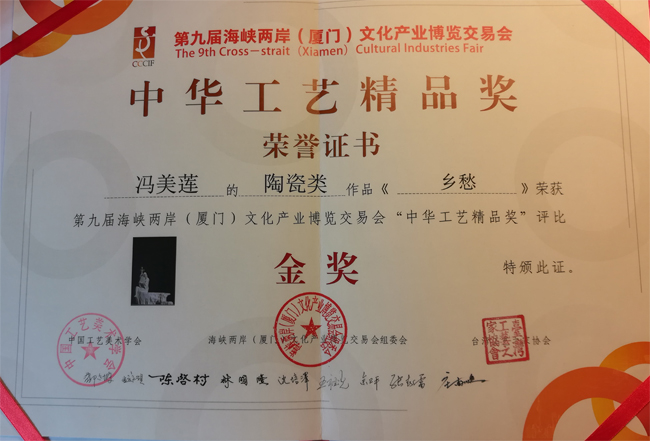 作品《鄉(xiāng)愁》在“海峽工藝精品獎(jiǎng)”評(píng)獎(jiǎng)中榮獲金獎(jiǎng)