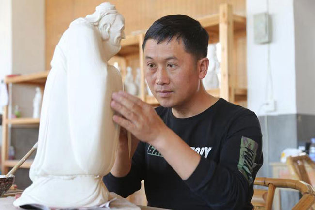 陳建陽(yáng),男,漢族,1979年10月出生于瓷都德化,畢業(yè)于江西省景德鎮(zhèn)陶瓷學(xué)院雕塑藝術(shù)設(shè)計(jì)專業(yè),F(xiàn)為福建省工藝美術(shù)大師,高級(jí)工藝美術(shù)師,國(guó)家一級(jí)技師,泉州市第三層次人才,德化縣第二屆優(yōu)秀青年人才,福建省工藝美術(shù)學(xué)會(huì)會(huì)員。1995年9月至2011年12月師從于德化百年老字號(hào)蘊(yùn)玉瓷莊第四代傳人——中國(guó)陶瓷藝術(shù)大師蘇獻(xiàn)忠。2012年1月初創(chuàng)辦德化縣得寶堂陶瓷藝術(shù)研究所任職藝術(shù)總監(jiān)。2018年10月參加中國(guó)陶瓷工業(yè)協(xié)會(huì)舉辦的2018年中國(guó)技能大賽——第四屆全國(guó)陶瓷職業(yè)技能競(jìng)賽總決賽并榮獲“全國(guó)陶瓷行業(yè)技術(shù)能手”榮譽(yù)稱號(hào)。2018年11月由泉州市人民政府,泉州市城鎮(zhèn)集體工業(yè)聯(lián)合社主辦的評(píng)審第三屆泉州市工藝美術(shù)大師榮譽(yù)稱號(hào)陶瓷類現(xiàn)場(chǎng)雕塑大賽第一名。2018年12月被福建省工業(yè)和信息化廳授予“福建省工藝美術(shù)大師”榮譽(yù)稱號(hào)。經(jīng)過(guò)多年的不懈努力和創(chuàng)作積累,以其深厚的陶瓷文化底蘊(yùn),精湛的瓷雕技藝,博取廣融,形成了自己獨(dú)特的藝術(shù)風(fēng)格,其所創(chuàng)作品深受業(yè)內(nèi)人士的贊賞。多件作品榮獲國(guó)家級(jí),省部級(jí)評(píng)比金獎(jiǎng)。作品《一個(gè)夢(mèng)想》《浩然正氣》被福建省工藝美術(shù)珍品館收藏、《江南春》《頓悟》《出水芙蓉》被福建省海峽民間藝術(shù)館收藏。多篇論文在《藝術(shù)科技》《天工》等刊物上發(fā)表。