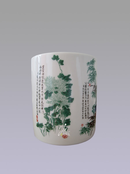 | 梅蘭竹菊四件套陶藝筆筒,也是景德鎮(zhèn)文房四寶中的一種,多用于書房,家庭茶具上面的擺設(shè)。該產(chǎn)品為本廠自主設(shè)計(jì),該產(chǎn)品器形也可以用于筷簍等用品。 |  |  |